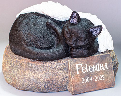 Black Cat Memorial Stone Grave Marker Cremation Urn Statue Pet Angel Wings Decor Ebay
